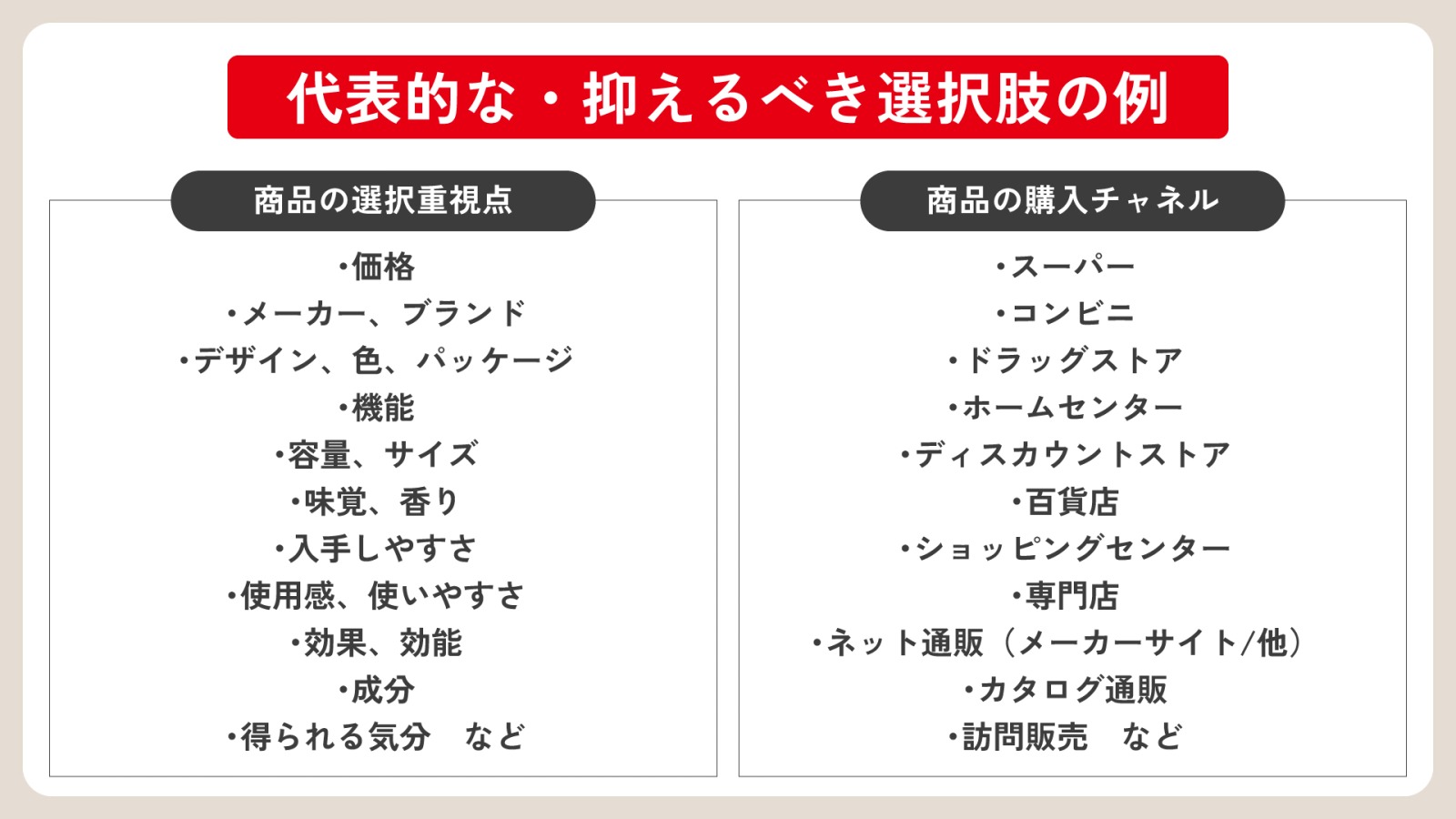 そのため、次のポイントを押さえながら選択肢を設計していきましょう、